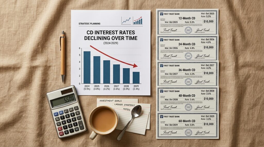 Strategy 1 — The CD Ladder Lock a portion of your savings in CDs at today’s rates. CDs are worth considering if you can afford to lock your money away for a set period of time. A simple CD ladder — dividing your savings into three equal portions in 3-month, 6-month, and 12-month CDs — gives you both rate protection and regular liquidity windows.