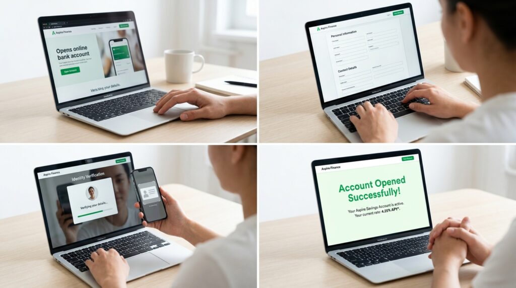 Step 2 — Open the account online (10–15 minutes) All accounts listed in this post can be opened entirely online. You’ll need: your Social Security number, government-issued ID, current bank account details for the initial transfer, and a phone number for verification.